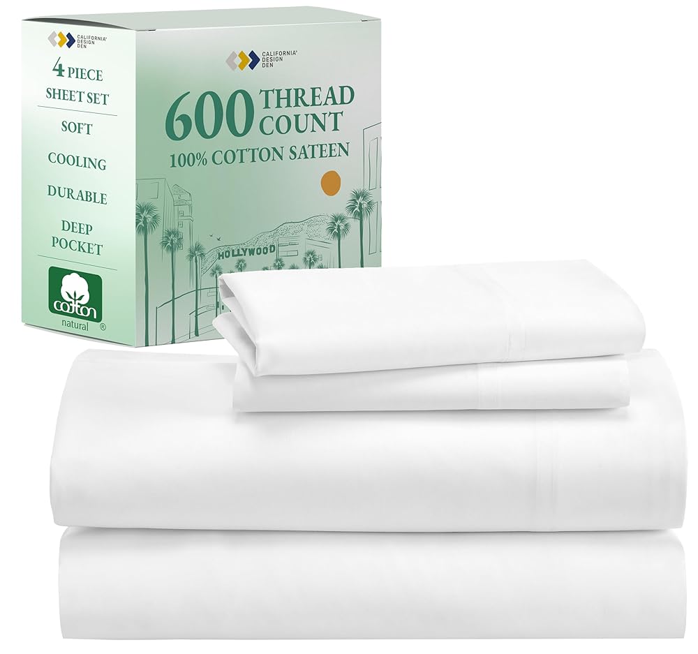 13 reviews for California Design Den Queen Size Sheet Set, 600 Thread Count 100% Cotton Sheets, Luxury Extra Deep Pocket Queen Sheets Cotton Sateen, Hotel-Quality Queen Sheet Set – White Sheets