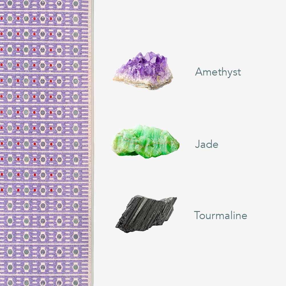 - WHAT’S INSIDE OUR MATS? Our infrared heating pads are constructed with 21 functional layers. The entire top surface of the mat infused with certified jewelry grade untreated, unpainted, and crushed natural Amethyst, Tourmaline, and Jade gemstones. When heated they emit deep penetrating Far Infrared Rays (range of 5-14 um) and calming Negative Ions (range of up to 1500/cc). Additional layers not only block EMF radiation, but make the mat comfortable and easy to use.