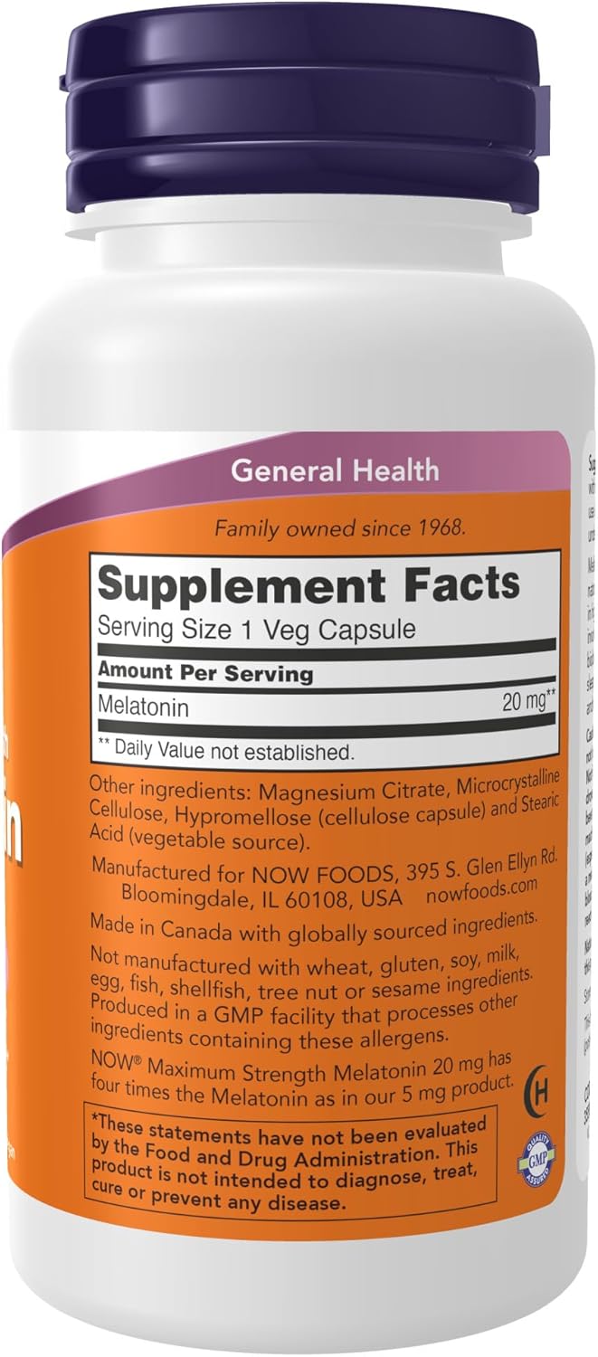 I’ve been taking Melatonin for awhile & also purchasing NOW products in Mag & Vit D so thought I’d give their Melatonin 20mg a try. It’s rare to find 20mg capsules first off. The capsules are easy to take and seem to work as they should.