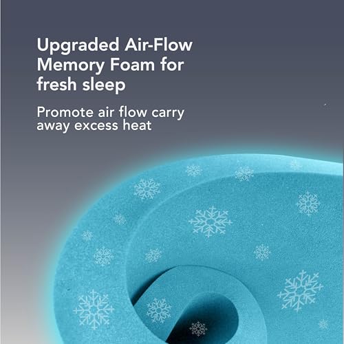 - Air-Flow Memory Foam – Our memory foam uses air-flow memory foam combined with an open-cell structure to promote air circulation, wicking away excess heat during sleep and regulating temperature for a refreshing and comfortable night’s sleep