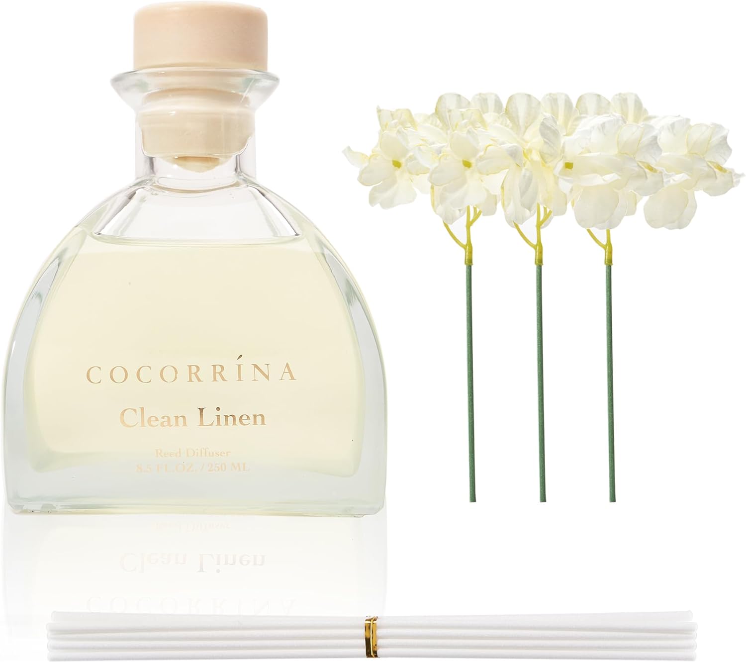 - COCORRÍNA Reed Diffuser from the Simple Luxe Collection. This 8.5 oz Clean Linen Reed Diffuser provides a delicate, fresh fragrance that evokes the comforting scent of freshly laundered linens. Whether placed in your bathroom, bedroom, or living area, it creates a serene atmosphere, perfect for relaxation and unwinding after a long day.
