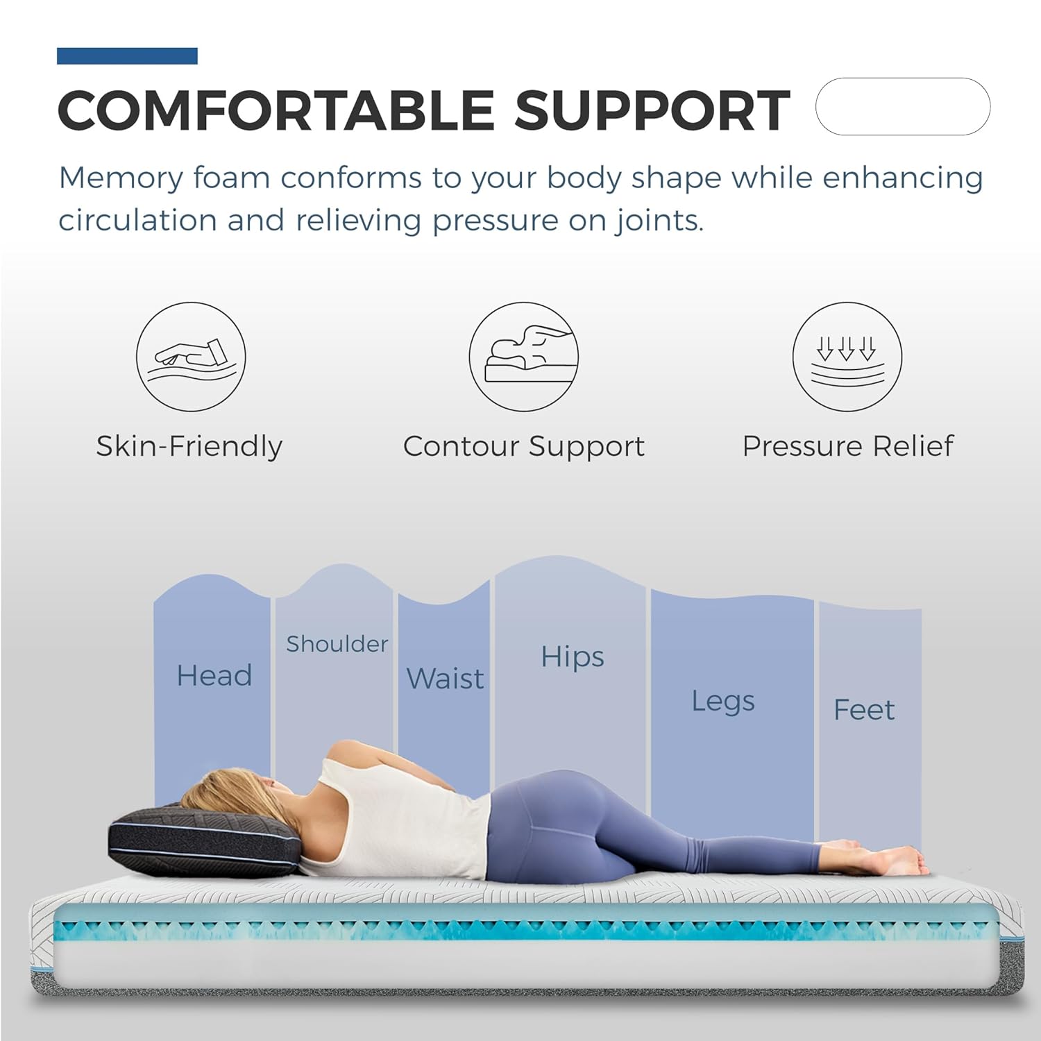 • Motion Isolation Technology: Dynamic memory foam mattress contours to your body’s unique curves, filling gaps to support optimal spinal alignment while effectively lowering motion transfer and noise, ensuring a serene and undisturbed sleep environment where everyone wakes up refreshed, ideal for couples and kids.