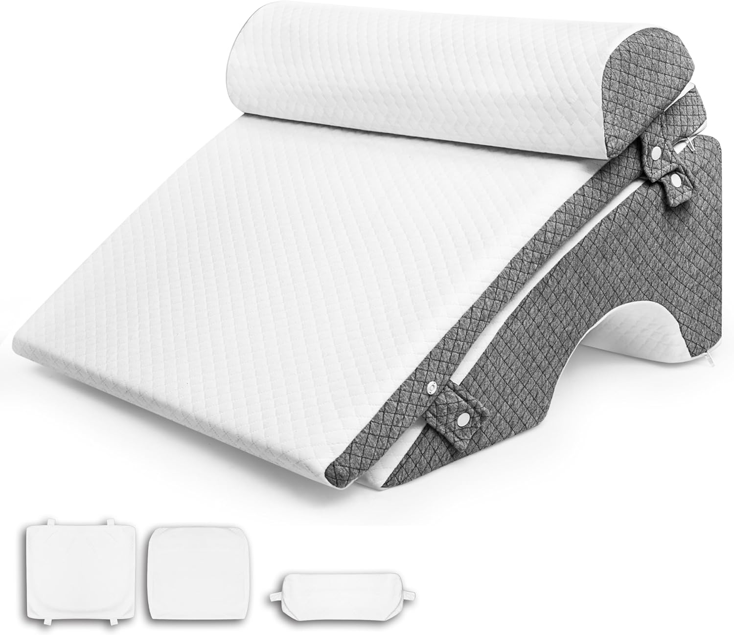 - [Certified Safety and Hygiene] This pillow wedge set is tested and certified by CertiPUR-US and Standard 100 for safety. Additionally, the sleeping wedge pillow for adults comes with an extra machine washable cover set, making it easy to keep clean and hygiene
