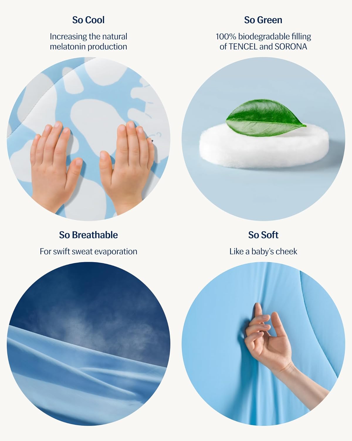 - Sweat-Free Slumber Endorsed by Sleep Foundation: Rest’s Evercool Comforter lives up to its name with proprietary fabric engineered to wick moisture away from your body; Ensuring your toddler sleeps soundly through the night; Say goodbye to restless tossing and turning